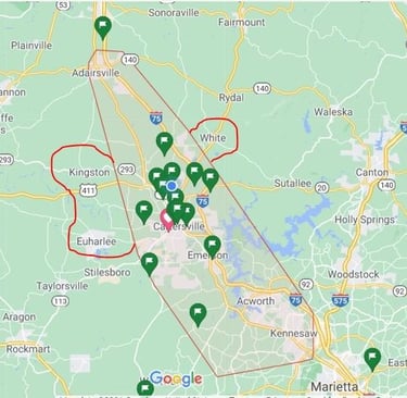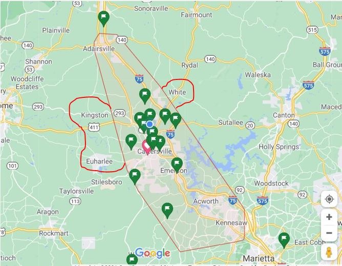 DO NOT MAKE A DEPOSITE PAYMENT IF YOU ARE NOT LOCATED WITHIN THE SERVICE ZONE CIRCLES ON THE MAP.